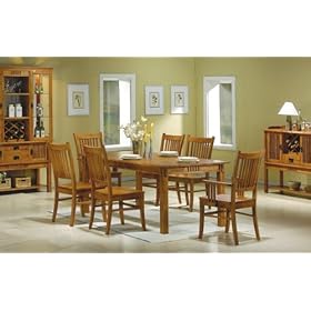 7pc Mission Style Solid Hardwood Dining Table & 6 Chairs Set: Furniture & Decor. The Collection includes dining table, four side chairs and two arm chairs. 7pc Mission Style Solid Hardwood Dining Table & 6 Chairs Set This is a brand new 7 piece Mission Style dining table and chairs set. This solid hardwood dining set is finished in light oak finish. This elegant dining table set will complement the most sophisticated to casual decor. Make this item yours today to beautify the decor of your home. Item may require simple assembly.