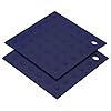 MIU France Set of 4 Silicone Pot Holders, Orange, Yellow, Green and Blue: Kitchen & Dining. Measures 7-inch. These silicone pot holders from MIU France take the fear out of burning hands and fingers or dropping piping hot dishes. The raised patterned design allows for easy grip when removing hot pots from the stove or baking dishes from the oven. These pot holders can also serve as trivets to protect countertops or tabletops; functions as a jar opener and a garlic peeler. These flexible pot holders can roll up for easy and compact storage or can hang from a hook. square; set of four comes in four fun colors - green, blue, yellow and orange.