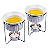 MIU France Set of 4 Stainless Steel Butter Warmers with Tea Lights: Kitchen & Dining. Each candle cup accommodates one 1-1/2 diameter votive candle. Recreating restaurant experiences at home can be tricky, not because the food is necessarily difficult to recreate, but because it can be hard to create the semi-theatrical mood of eating out. But sometimes all it takes are the right props to set the stage. MIU France's stainless steel butter warmers provide the means to re-enact some fun eating experiences by using candle power to heat butter for dipping. Shrimp, crab and lobster are three good dipping foods that immediately come to mind, as well as asparagus and artichokes. It doesn't have to be only butter; extra-virgin olive oil with some salt, black pepper, and minced garlic would be a great warm dip for toasted cubes of French bread. Or heat a little chocolate sauce for dipping strawberries or pound cake. Each warmer comes with two cups, a large one for the butter, and a smaller one for the candle. The cups rest in a two-level steel stand with curved legs that end in ball finials. The stand holds the butter cup about 6 inches up from the table surface, and the candle is underneath, providing not only heat but also a flicker of romance. All three permanent parts of the butter warmer are dishwasher-safe. Each warmer measures 3-1/2 inches in diameter by 6 inches tall. Four candles are included in the packaged set.