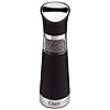 MIU France Stainless Steel Electric Peppermill with Light: Kitchen & Dining. The battery housing also easily lifts from the base to refill the supply chamber with peppercorns. This electric pepper mill has a modern shape that is beautiful to behold and and a superior grinding mechanism that meets the expectations of picky chefs. The mill has a brushed 18/10 stainless steel body with a glass window for monitoring how many peppercorns remain in the chamber. Pressing the button on top of the electric pepper mill commences grinding and pepper output. A lamp at the bottom lights up during grinding so that, even at a dimly lit dining table, you can always see how much pepper is landing on your green salad or salmon fillet. The grinder has a patented carbon steel grinding gear for long-lasting use and a dial on the underside of the mill controls the fineness of the grind (clockwise for fine and counter-clockwise for coarse). A plastic lid covers the grinder opening when the mill is at rest on a table or countertop. The electric pepper mill runs on six AAA batteries (not included) and the locking housing cover twists and lifts to expose the battery housing for installation. The grinder is suitable only for peppercorns and no other spices.