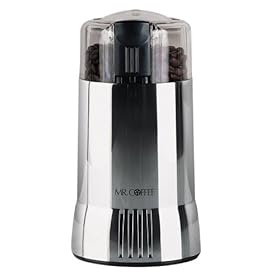 Mr. Coffee IDS59-4 Electric 2-2/7-Ounce Coffee Grinder: Kitchen & Dining. The chamber's round shape helps ensure consistent grinding, and its generous interior can accommodate enough beans for up to 12 cups of coffee. Sleek and sophisticated, this electric 2-2/7-ounce coffee grinder not only looks good in any modern kitchen, but it also makes quick work of grinding whole coffee beans into freshly ground coffee ready for brewing. Simply add a measured amount of beans to the stainless-steel grinding chamber, position the transparent cover securely in place, and press down on the on/off safety switch to set the blades spinning (won't operate with improper placement of lid). By flipping the unit upside down, the large lid can be used to transfer the ground coffee from the grinder to a coffeemaker.