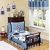 Nautical Nights Boys Sailboat Toddler Bedding 5 pc Set: Baby. It boasts a designer stripe, mini nautical print, and rope trim to bring together a sail boat theme for your child's bedroom. The Nautical Nights 5pc boys toddler bedding set by JoJo Designs creates a classic boutique setting for your little sailor. This timeless boy bedding set features nautical themed appliqués and embroidery works of sailboats, anchors and helms. This set uses a rich color palette of navy, red, chambray blue, and camel combining 100% Cotton and micro suede fabrics. Every piece is non allergenic and machine washable for ease and repeated use.