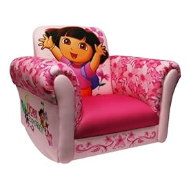 Nickelodeon Rocking Chair, Dora: Baby. You can create a whole Dora room setting your little explorer will love. Dora Rocking Chair, your child's very own chair. Fun place to sit, visit with friends or watch a favorite movie. This rocking chair has extra touches for that designer look such as front arm panels and hard resign rockers. The hard resign rockers are very strong to handle the rigors of todays kids. The construction is hard wood frame covered with poly urethane foam and upholstered in soft to the touch, yet durable polyester fabric. The fabric is easy to clean with mild soap and water. The seat bottom measures 13' x 13' and 11 inch to the floor. There are coordinating furniture items available to match this cute rocker. Other items sold seperately.