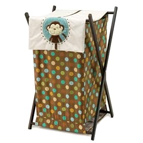 NoJo Jungle Tales Hamper: Baby. Fun colors in brown, ivory, rust, sage, aqua. Go wild for NoJo Jungle Tales Infant bedding collection. The wooden framed hamper comes with a removable mesh liner for easy access. Helps to keep your nursery organized. This features an adventuresome monkey, elephant, giraffe, tiger, lion and turtle.