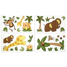 NoJo Jungle Babies Wall Decals: Baby. Easy on, easy off, wall decals cone with four sheets in each pack. Babies will go wild for NoJo Jungle Babies wall decals. It comes ready to stick onto the wall. Get creative in designing your own custom look. Each sheet measures 10 x 18.