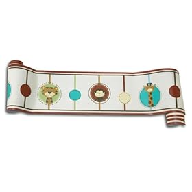 NoJo Jungle Tales Wallpaper Border: Baby. Easy application directions enclosed. Go wild for NoJo Jungle Tales Infant bedding collection. The pre pasted wallpaper border comes in a double roll 30 feet in length. Fun colors in brown, ivory, rust, sage, aqua.
