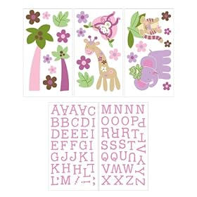 Nojo Sweet Jungle Babies Wall Decals: Baby. Use these delightful jungle stickers to custom decorate your nursery. Sweet Jungle Babies Wall Decals comes with 4 - 10 inch x 18 inch sheets of various stickers and alphabets. Stick on peel off. Has self stick adhesive which is removable and reusable and it will not harm your walls or furniture.