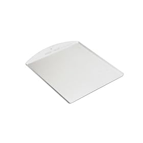 Nordic Ware Traditional Cookie Sheet, 13.5 by 14 Inch: Kitchen & Dining. The baking tool is rust- and corrosion-proof and goes safely into the dishwasher. A staple item in any kitchen, the cookie sheet has the built-in promise of many tasty pleasures to come. NordicWare's traditional version is constructed of uncoated, commercial-grade aluminum in a roomy 13-by-14-inch size to evenly circulate heat over large batches of the day's chosen treat. The light silver finish discourages overheating so insides have time to cook thoroughly while outsides gain a light-brown crunchiness. Finished with a nonstick coating, freshly baked goods slide off the sheet with ease, while the slanted end handle helps the cook maintain a firm, secure grip. Part of NordicWare's Natural series, it is made in the USA.