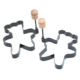 Norpro 978 Bear Pancake/egg Rings 2 Pcs: Kitchen & Dining. Do the same with eggs (unless you prefer them sunny-side up, of course). Add interest to breakfast--or to any child's meal--by forming pancakes or fried eggs into teddy bear forms with these clever, inexpensive, nonstick molds. Lift the molds by their handles and place them on a hot griddle or in a frying pan. (The handles have stay-cool wooden tips and fold flat for storage.) Pour in pancake batter or crack an egg into each mold. Halfway through cooking, remove the molds. For pancakes, flip the pancake to cook on the other side. The molds are 5 by 3-3/4 inches and need to be hand washed in soapy water.