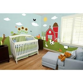 Nursery Wall Mural - Farm Animal Wall Mural Self-adhesive Stencil Kit - Fun Nursery Decor: Baby. Perfect for the baby nursery or young child's room, this set was designed with your child's imagination in mind. With a MOO MOO here and an OINK OINK there, Friendly Farm stencils can go everywhere! We are headed to the country with this delightful farm theme stencil set. Paint a full farm with a large barn and all the animal friends. Each animal exudes personality, as if they were characters in a storybook.