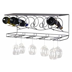 Oenophilia Wine Bar Rack: Kitchen & Dining. This rack holds 8 stems and 6 standard size wine bottles, and the shelf can be used for additional bottles, glassware or decorative items. Wine bars have always been favorite gathering places for old friends, and this Oenophilia Wine Bar will be no different for your kitchen or home bar. This wine and stemware rack features a contemporary design in metal, with a solid metal shelf across the top. Mounts on wall.