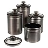 Old Dutch International Antique Embossed Canisters, Set of 4: Kitchen & Dining. Snug-fitting lids echo this harvest motif. These attractive, antique-finished canisters bring the warmth of days gone by to any kitchen décor. Available in four sizes--four-quart, two-quart, one-and-a-half-quart, and one-quart--they're perfect for storing everything from cookies and treats to bulk staples like sugar and flour. Each copper-colored canister is beautifully hand-embossed with grapes and scrolling vines. Each canister has a single, easy-to-grasp knob.