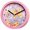 Olive Kids - Blossoms And Butterflies Clock (White): Home & Kitchen. The clock face is a light pink with a pretty pink flower arrangement in a purple pot.