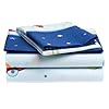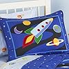 Olive Kids - Out Of This World Twin Size Comforter and Sheet Set: Home & Kitchen. The flat sheet and pillowcase are hemmed with our dark blue coordinate with blue and white stars. Blast off with Out Of This World Bedding! Our ultra soft comforter is made of 100% cotton and has a light weight fill; far more comfortable for little ones! The top features an entire solar system of planets, stars, rocket ships and more on a dark blue and black background. Outline stitching around the images make them pop inch off the comforter- an Olive Kids exclusive! The reverse is our dark blue coordinate with blue and white stars.Shooting stars, UFO's, planets, and stars cover the light blue 100% ultra soft cotton sheets. The hem is folded and sewn, then bordered with a blue ribbon trim.