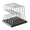 Organizer Rack for Bakeware, Cookware and Lids (White) (12L x 7-1/4W x 7-1/8H): Kitchen & Dining. Bake-ware racks are a simple and effective way to keep your kitchen cupboards and cabinets organized. Muffin tins, cookie sheets, pans and pot lids stay upright and easy to reach in this sturdy cook-ware organizer. Six sections give you ample room for keeping your cooking necessities in order. Durable metal frame has a nonstick white vinyl coating to protect against scratches. Measures 12L x 7-1/4W x 7-1/8H.
