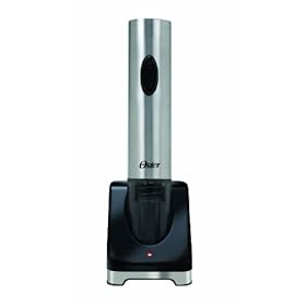 Oster FPSTBW8215 Deluxe Electric Wine Opener: Kitchen & Dining. Designed to fit all traditional wine bottles, this must-have entertaining gadget also includes a foil cutter to quickly remove seals. Entertain guests with little effort and plenty of panache with the sleek, sophisticated and stylish Oster™ Deluxe Electric Wine Opener. This must-have entertaining gadget will remove a wine cork from the bottle in seconds with the touch of a button. The stylish stainless steel finish will complement your other kitchen appliances and look great when displayed on your counter or table-top. The semi-transparent base of the unit allows you to watch as the cork is effortlessly removed from the bottle. A separate recharging base ensures convenience and mobility of the opening unit. Comes gift-boxed.