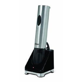 Oster FPSTBW8216-KIT Deluxe Electric Wine Opener Plus Wine Aerator: Kitchen & Dining. The included aerator introduces oxygen to the wine, making it taste fresher, smoother, and enhancing its flavor. Entertain guests with little effort and plenty of panache with the sleek, sophisticated and stylish Oster™ Deluxe Electric Wine Opener, Plus Aerator gift set. This must-have entertaining set includes an electric wine opener that will remove a wine cork from the bottle in seconds, plus an aerator to improve the taste of your wine. The stylish stainless steel finish of the wine opener will complement your other kitchen appliances and look great when displayed on your counter or table-top. The semi-transparent base of the unit allows you to watch as the cork is effortlessly removed from the bottle. A separate recharging base ensures convenience and mobility of the opening unit. Designed to fit all traditional wine bottles, this must-have entertaining gadget also includes a foil cutter to quickly remove seals. Comes gift-boxed.