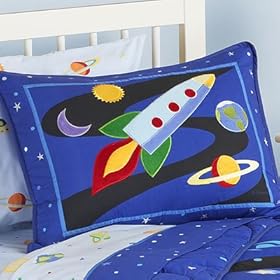 Out Of This World Standard Pillow Sham by Olive Kids: Home & Kitchen. The rocket is featured on a colorful outer-space background that is embellished with a blue ribbon border. This is the most fun sham available anywhere! Out of This World sham has a colorful rocket made with soft appliquéd plush and embroidered details.