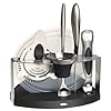 OXO SteeL Cocktail Shaker: Kitchen & Dining. The shaker measures 9 by 3-1/2 inches and complements other stainless-steel accessories in OXO’s barware collection. Brushed stainless steel inside and out gives this cocktail shaker a sleek, modern look. Double-walled construction means less condensation, keeping hands from slipping while shaking up favorite drinks. A soft-grip outer cover on the jigger (which doubles as a lid) allows it to be held securely while adding liquid to any of three measurement markings: 1-1/2, 1, and 3/4 ounces. A built-in strainer prevents unwanted ice from falling into glasses. OXO backs all its products with a satisfaction warranty, and will replace or refund any returned item.