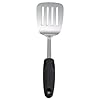 OXO Good Grips Fish Turner: Kitchen & Dining. The beveled edge slide easily beneath foods and the slots in the head allow grease to drain. The OXO Good Grips Fish Turner lets you lift, flip and transfer fish while keeping it intact. Use this handy tool for whole fish, filets, seafood cakes and more. The durable, stainless steel head is oversized for larger fish and the soft handle allows for a comfortable grip.