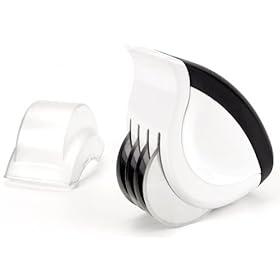 OXO Good Grips Herb Mincer: Kitchen & Dining. The durable plastic housing sports the signature Good Grips soft, non-slip grip and also ensures that fingers stay away from the cutting action. Chasing leafy fresh herbs around with a big kitchen knife can be a time-consuming and irritating chore. Oxo offers an alternative with its Good Grips herb mincer. A hand tool with a rocking design and four stainless-steel blades, the mincer makes quick work of basil, mint, parsley, and other herbs. Designed to separate into two pieces for easy cleanup, the mincer is dishwasher-safe and comes with a protective blade guard for storage.