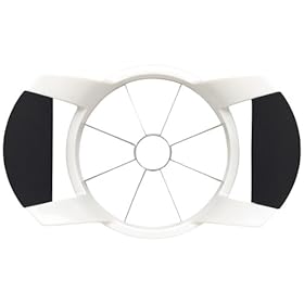 OXO Good Grips Apple Corer and Divider: Kitchen & Dining. Made from the same material as dishwasher gaskets, the handles are slip-proof--wet or dry--as well as dishwasher-safe. One second is all it takes to yield perfectly cut fruit slices with this tool by Oxo. Also a great tool for pears, the apple divider's soft, oversize rubber handles relieve and absorb the pressure from your hands for a nearly effortless cut. Positioned at an angle upward from the blade base, the handles ensure that hands and fingers have ample clearance from tabletops and cutting boards. Stainless steel makes the blades easy to clean and dishwasher-safe. The Good Grips line features durable, nonslip, flexible handles on every product. Ergonomically designed to fit the palm comfortably and softly, the pressure-absorbing processed rubber handle puts less tension on the hands while still providing an outstanding grip. Good Grips products are moderately priced and have won the Tylenol/Arthritis Foundation Design Award.