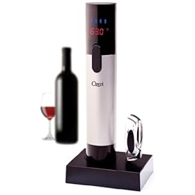 Ozeri Maestro Electric Wine Opener with Infrared Wine Thermometer and Digital LCD Display -- Ultimate Wine Gift on Sale: Kitchen & Dining. The Maestro includes an elegant recharging base with a built in foil cutter to remove wine seals. Inspired by the wine cellar tradition of monitoring wine temperature with precision to ensure the best flavors and aromas, the Ozeri Maestro Electric Wine Opener blends an advanced electric wine opener with a new state of the art infrared non contact thermometer. The Ozeri Maestro Electric Wine Opener opens up to 80 bottles of wine on a single charge, and its built-in thermometer displays both wine bottle and room temperature readings on its digital LCD screen. As oenophiles know, temperature is one of the major determinants of wine flavor and balance. Unfavorable temperatures can cause an increase in tannins, excess acidity, aroma decay, premature aging, reduced potency and other undesirable characteristics. With the Ozeri Maestro Electric Wine Opener, your wine will always be served at the right temperature. The Maestro also features a digital battery meter on its LCD screen so that you are never out of charge. The Ozeri Maestro Electric Wine Opener makes opening wine bottles easy, exciting and entertaining. Designed for home and restaurant use, it operates without cords via the simple push of a button. The Ozeri Maestro Electric Wine Opener opens both natural and synthetic corks, and features an ergonomic grip for easy handling.