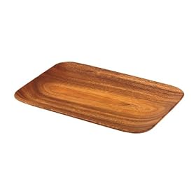 Pacific Merchants Acaciaware 10.5- by 7.25- by .75-Inch Acacia Wood Rectangle Serving Tray: Kitchen & Dining. A match for the Acaciaware bowls and specialty servers, the piece is great for a selection of breakfast pastries or a main course of grilled salmon. The lovely Acaciaware serving collection is created by Pacific Merchants, a company dedicated to high standards of craftsmanship and careful stewardship of the environment. To meet both aims, Pacific Merchants sources its wood from highly regulated and carefully harvested lands. The hardwood acacia trees used for the Acaciaware line are premium quality, as well as responsibly sourced, with a dense, durable, resinous quality. Crafted by hand, each piece features a rich color and a prominent grain, both beautifully enhanced by clean lines and subtle details.A soothing design, this Acaciaware tray features rounded corners on a rectangular silhouette for generous capacity and comfortable shaping. Measuring 10-1/2 by 3/4 by 7-1/4 inches, it should be washed by hand and air-dried.