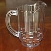 Clear Plastic Pitcher: Kitchen & Dining. What better way to serve your party beverages than our Clear plastic pitchers? Each pitcher features a handle and pouring spout for easier pouring! The vertical lines give this pitcher both texture and character while providing an elegant look that will make any beverage sparkle! Save yourself the hassel of dealing with heavy glass, and expensive drink dispensers.