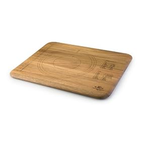 Paula Deen Signature Wood Pie Board, Natural: Kitchen & Dining. The pie board has gentle rounded edges and is perfect for any baking job, large or small. Add that old-world charm to the kitchen with Paula Deen's beautiful wood cutting and pie board. Distinctly crafted from beautiful acacia wood in a natural tone, you'll want to keep it on the counter for display. The pie side is engraved with 6-inch, 8-inch, 9-inch, and 10-inch rolling guides, and edged with a 14-inch ruler for easy and accurate baking every time.