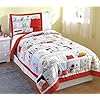Boys Peanuts Comic Strip Red and White Comforter Sham Set - Twin: Home & Kitchen. L)One Standard Sham (20 in. Comic Twin Mini Comforter Set - Multi (NEW in Original Packaging) Hail, hail the gang's all here-the Peanuts gang, that is! This Comic mini comforter set features all of your favorite characters, including Charlie Brown, Snoopy, Woodstock, Sally, Lucy and Linus with his trademark blanket. The face of the comforter features jumbo reproductions of actual comic strips, accented by a corner design of Woodstock and a flock of his friends and banded on all four sides by a crimson border. The face of the standard flanged pillow sham features comic strip images of Linus clutching his blanket, embellished with a large image of Snoopy on top of his doghouse; the sham also is banded on all four sides in crimson. The comforter and sham are constructed of an easy-care, 100% polyester peached microfiber fabric and are machine washable. The Comic mini comforter set sells for $49.99 in leading department stores and major specialty shops! Sheet set shown is not included.Comforter Set includes: One Twin Comforter (66 in. W x 86 in. W x 26 in.