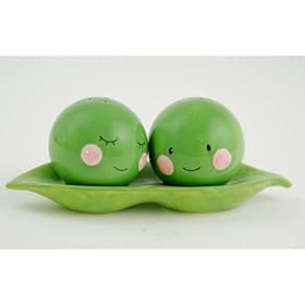 Two Peas in a Pod Salt & Pepper Shaker Set, Magnetic, Green & Pink Ceramic: Kitchen & Dining. These peas are just adorable with their rosy cheeks and tender expressions. This 3-piece set includes salt shaker, pepper shaker and a dish to set them on.