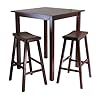 3 Piece Black Finish Table & Saddle Bar Stool Set: Furniture & Decor