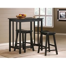 3 Piece Black Finish Table & Saddle Bar Stool Set: Furniture & Decor. The barstools are done in the saddle stool style. This listing is for a brand new 3 piece bar table & saddle bar stool set. The table and barstools are done in a black finish. This set includes the bar table and 2 24 inch saddle barstools.