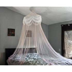 Pink Princess Bed Canopy Mosquito Net Bed Netting: Home & Kitchen. It features a pink feathered jeweled top, mounts easily to almost any ceiling and fits twin and full size beds. Give your bedroom or your child's bedroom a glamorous touch with this pink canopy. It has a 26 inch top diameter and is about 8ft in length.