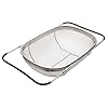 Polder 6631-75 Stainless-Steel Sink Strainer with Extending Rubber-Grip Arms: Home & Kitchen. Oval-shaped to fit easily into most standard sinks, the strainer's slender feet allow it to drain properly, and its smooth stainless-steel top rim protects hands against sharp edges. Lightweight and portable, this versatile sink strainer offers a reliable way to rediscover cooking's many joys and rewards. The unit's gleaming stainless-steel construction resists rust and corrosion despite frequently damp circumstances, while its fine mesh basket captures even the tiniest summer berries and other small foods to prevent waste. Plus, its unique extending arms with comfortable rubber grips can be stretched to suspend it across a sink--elevating the basket above standing water for safe and thorough draining.