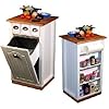 Portable Kitchen Island Unit with Shelving: Furniture & Decor. Made in the USA. Portable Kitchen Island Unit with Shelving. Our Double Butcher Bin is versatile and efficient. A great addition to any kitchen, this bin is constructed from durable, easy to clean, stain resistant, laminated wood composites and incorporates a solid hardwood cutting board top that measures 36 inch wide x 18 inch deep. Carve with confidence the largest turkey, slab of beef or rack of lamb. Slice, dice or julienne fresh fruit and vegetables... like a pro. Unique design incorporates a storage compartment for food scraps or other refuse. Holds a standard 10 gallon (41.25 qt.) size waste basket (not included). Compartment size for waste bin measures 19.875 inch high x 11 inch wide x 15.25 inch deep. We increased this cabinets versatility by adding 3 pantry shelves and a paper towel holder in the rear. In addition there are now 3 roomy open shelves (15 inch deep x 13 inch wide) for pots, pans or whatever else you want to keep at the ready. Durable casters offer smooth and easy mobility. Available in white only with a natural color solid hardwood top. Handles are nickel with a nice satin finish. Easy assembly required. Measurements: 18L x 35W x 35H Weight: 75 lbs.
