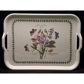Portmeirion Botanic Garden Melamine Handled Tray: Kitchen & Dining. Melamine Handled Tray - Bands Of Laurel Leaves And The Various Flowers Depicted With Butterflies Decorate The White Body - Design By Susan Williams-Ellis - Made In Not Specified.