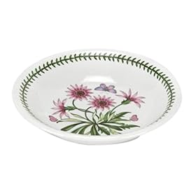 Portmeirion Botanic Garden Pasta Bowls, Set of 6: Kitchen & Dining. More than 30 years ago the founder of Portmeirion Potteries was inspired by 19th-century botanical illustrations to create the Botanic Garden collection of tableware and cookware. This set of six 8-1/2-inch pasta bowls features an assortment of the 28 hand-painted floral motifs that make up the Botanic Garden collection. Lilac, hyacinths, azaleas, and many other typical English garden flowers stand out boldly against a glazed white background, surrounded by a border of small green leaves. These versatile bowls are also ideal for serving soup, cereal, stews, or desserts. Each piece is crafted from fine glazed earthenware and features highly detailed floral designs complemented by a simple border of green leaves to give the collection a coordinated look.