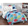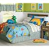 Prehistoric Dinosaurs Bedding Set - 6pc Bed-n-bag Ensemble - Twin Bed: Home & Kitchen. Both of the above sheets fit a standard twin mattress of 39 x 75 inches. A land of colorful, dinosaurs comes to life with this exciting bed ensemble. Light blue background on the comforter in a prehistoric scene. One twin size comforter 66 x 86 in. (167 cm x 218 cm). One twin flat bed sheet, finished size 66 x 96 inches (168 x 244 cm). One twin fitted sheet. One standard Pillowcase, finished size 20 x 30 inches (51 x 76 cm) to fit 20 x 26 inches pillow.