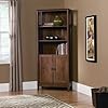Prepac Slant-Back Bookcase with Shaker Doors in Espresso Finish: Office Products. This bookcase is ideal for dens, offices and bedrooms. An elegant design for any room, the Slant-Back Bookcase with Shaker Doors offers ample storage in an understated package. Six shelves' worth of storage for books and decorative items pair perfectly with its modern slanted design. Two Shaker-style doors keep items dust-free and out-of-sight and open to reveal a 13-inch deep lower compartment with one adjustable shelf. Create a library wall by grouping two or more together.