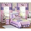 Pretty Pony Horse Childrens Bedding 3pc Full / Queen Set: Home & Kitchen. It is detailed with cotton and microsuede appliques and embroidery of ponies, flowers and horseshoes. The JoJo Designs Pretty Pony 3pc Full/Queen Bedding ensemble will help your little girl saddle up for sweet dreams! This soft pastel horse and pony bedding set uses a collection of coordinating 100% cotton fabrics in a beautiful color palette of light pink, purple, sage green, and butter yellow.