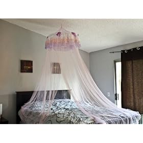 Pink Princess Triple Bed Canopy Mosquito Net Bed Netting: Home & Kitchen. It features a pink feathered princess top, mounts easily to almost any ceiling and fits twin and full size beds. Give your child's bedroom a glamorous touch with this pink canopy. It has a 26 inch top diameter and is about 8 ft in length.