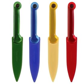 Progressive International 4-Piece set Food Safety Paring Knives: Kitchen & Dining. This set of 4 safety paring knives are color coded to reduce cross contamination. Progressive International is your source for the widest range of functional, inventive, and fun kitchen tools and great ideas put into practice. Our in-house designers spend hours in the kitchen coming up with ways to improve on a variety of traditional tasks and tools. Established in 1973, our commitment to quality and service allows us to offer a broad selection of quality kitchenware and other household products. Red is for meats, blue for seafood, yellow for poultry, and green for vegetables.