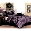 7pc King Faux Silk Purple Black Embroidery Comforter Set Bedding-in-a-bag