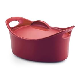 Rachael Ray Stoneware 4-Quart Covered Bubble & Brown Casserole Casseroval, Red: Kitchen & Dining. 4-1/4 Quarts Generously sized, this covered oval casserole is great for baking just about everything. Your meal will go right from the oven to the table in style. Rachael Ray. Multiple Use Stoneware - Dishwasher, microwave, freezer safe and oven safe to 500-Degree F for convenience and versatility. The glazed interior is nonporous so foods won't interact. Contemporary Design - Contemporary, playful shape in a vibrant and fun color goes directly from oven to table. Wide Handles - Extra wide handle holes allow you to get a good grip from any angle. Chicken and veggies, a baked cheesy pasta or your favorite casserole are ideal in this CASSEROVAL.