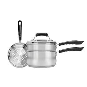 Range Kleen 4 Piece 3 Quart sauce pan with lid, steamer & double boiler insert: Kitchen & Dining. 4 piece Set- 3 quart saucepan with Steamer and double boiler insert with Lid.