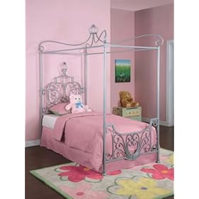 Twin Size Rebecca Canopy Bed in Shiny Sparkle Silver Finish - Princess Collection: Furniture & Decor. Dimension: 83 1/4W x 40 1/4D x 78 1/2H.