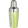 Recipe Cocktail Shaker, Stainless Steel/Glass: Kitchen & Dining. and ml. Three-pieces: glass shaker shell (16 oz. Rim-full), brushed stainless steel strainer top (with beaded seal) and top cap. Seven printed recipes around outside of glass plus measure marks in oz. 8-1/4'' high.