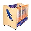 Room Magic Nursery Set, Magic Garden Natural: Baby. Changing Pad Cover fits standard changing table pads, 32 inch x 16 inch (sold separately). With clean lines and colorful contemporary styling, this adorable Magic Garden Nursery group comes complete with Crib/Toddler bed, Cribset, 5 Drawer Chest with Changing Table Tray, Changing Pad Cover, and set of window panels. Built to last, all furniture is made with solid hard wood in a rich chocolate finish and accented with colored stains, this quality designer nursery set has unique features that make it as practical as it is attractive. All drawer fronts are reversible – finished with colored stain on one side and clear natural finish on the other—allowing you to change the look of the chest as your child gets older, extending its use from baby to teen. Includes set of purple flower and pink tulip knobs and set of Natural Wave knobs. Changing Table Tray attaches to top of Chest and can be removed, so chest can be used as childs dresser. This unique 2-in-1 Crib has a colored butterflly-shape plexi-glass window that lets baby look out and mommy look in. After baby outgrows the crib, it converts to a toddler bed, allowing toddlers to play safely in the colored plexi windows. Fits standard US crib mattress, not included. Crib mattress support has 3 levels of adjustment. Includes 4 sturdy casters, 2 are locking. Crib is US safety tested and approved. The textiles are made of 100% cotton poplin designer print swirling with flower-fairies and buttterflies. Crib set includes Crib Bumper (print outside and ruffle, solid inside), sheet (celery green solid), Crib Skirt (print), and Comforter (print top and ruffle, solid bottom). Window panels included, set of 2, 59wide x 84high.